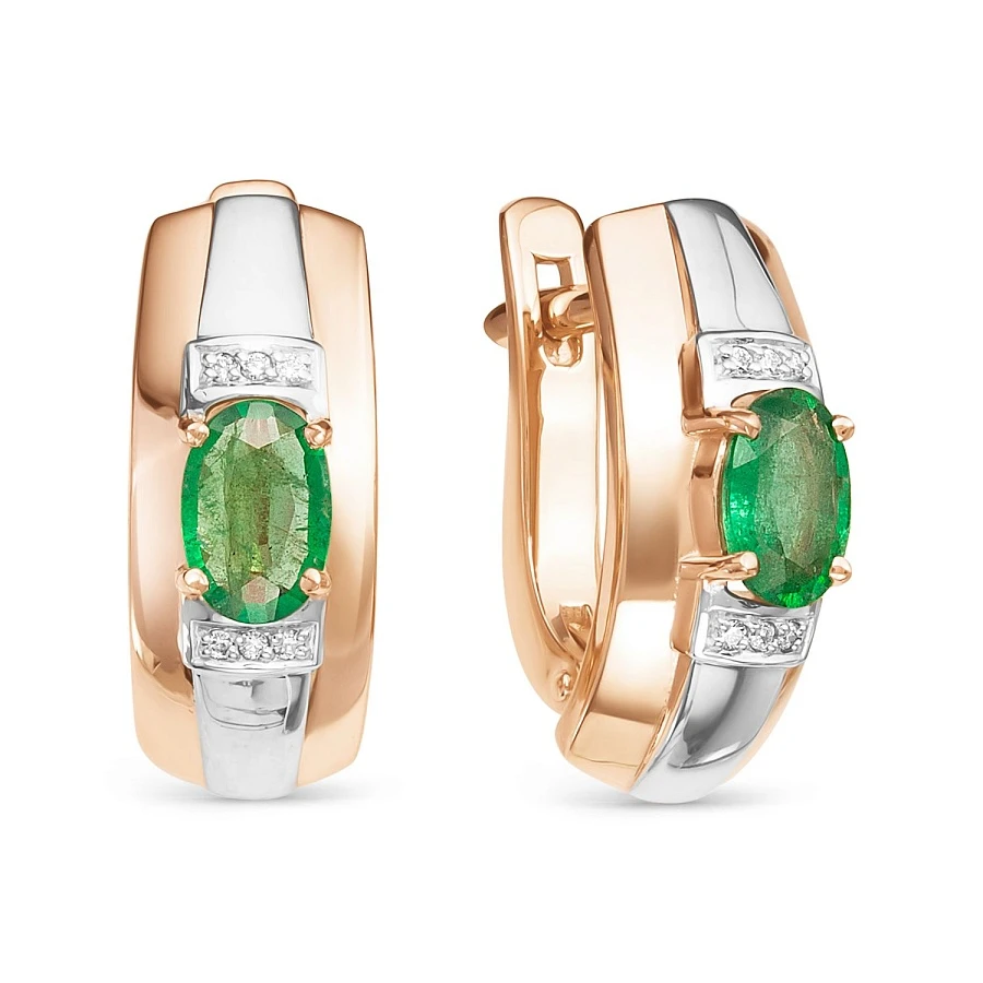 Серьги из комбинированного золота с изумрудом