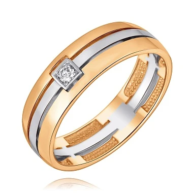 Кольцо из комбинированного золота с природным бриллиантом