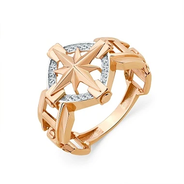 Кольцо из красного золота с фианитом