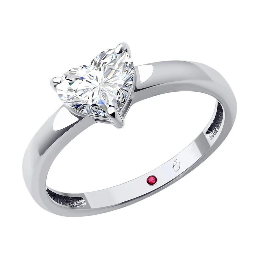 Кольцо из белого золота с выращенным бриллиантом