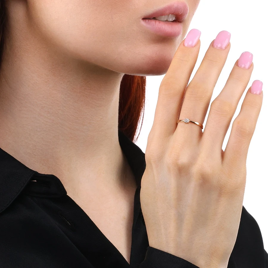 Кольцо из красного золота с природным бриллиантом