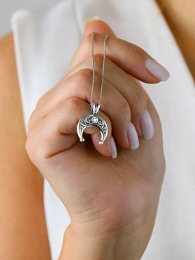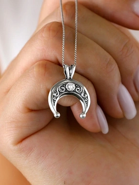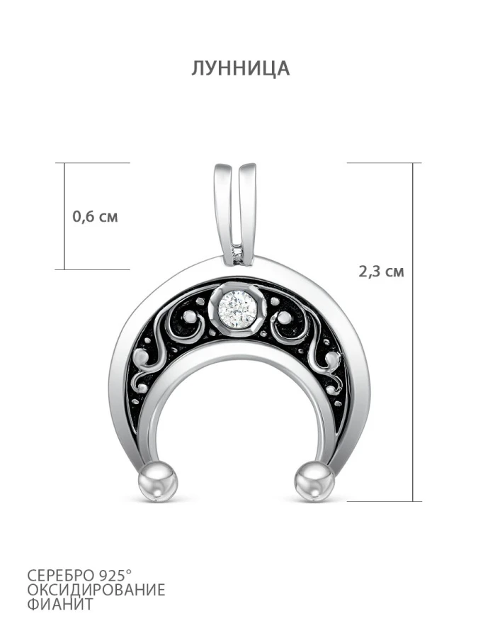 Подвеска из серебра с чернением с фианитом