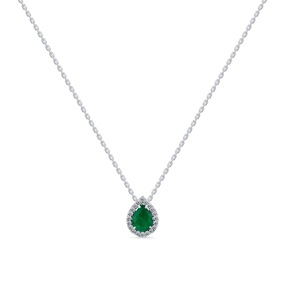 Колье из белого золота с изумрудом