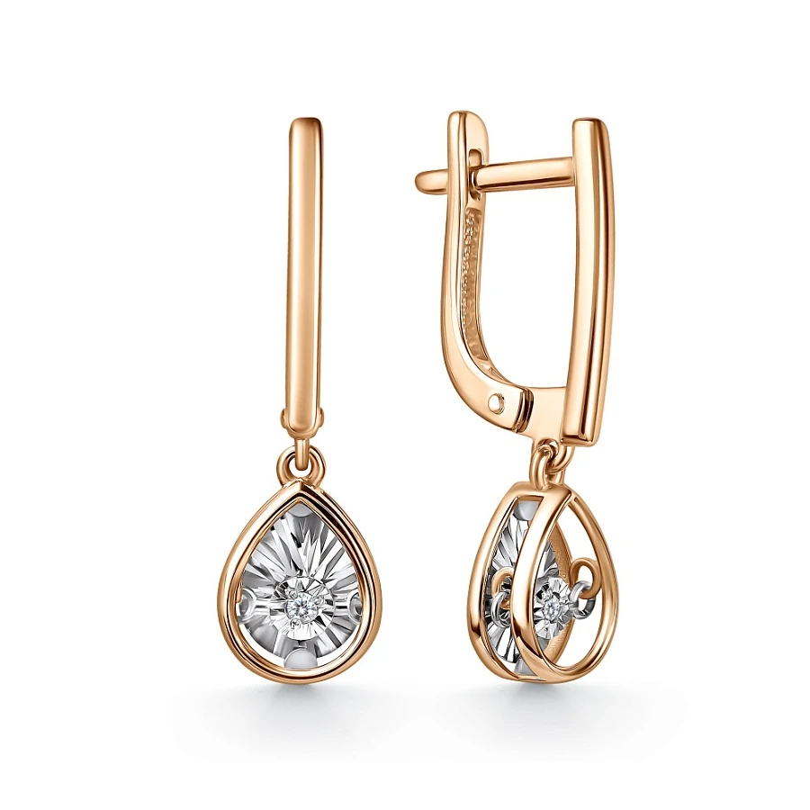 Серьги из комбинированного золота с природным бриллиантом