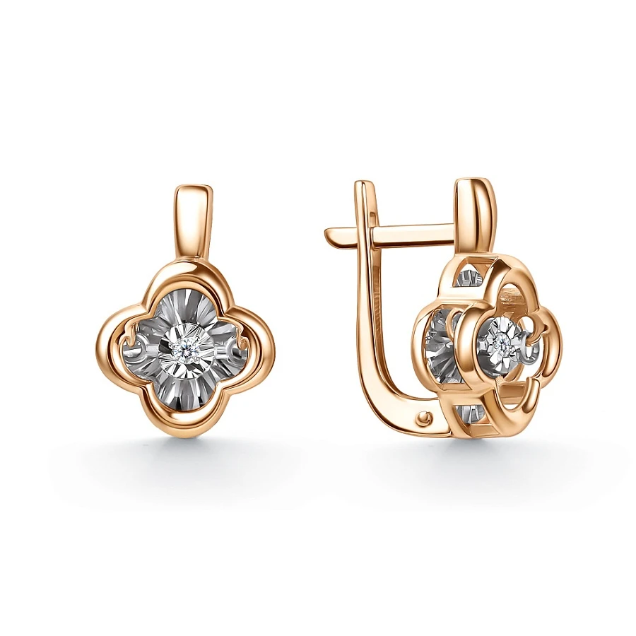 Серьги из комбинированного золота с природным бриллиантом