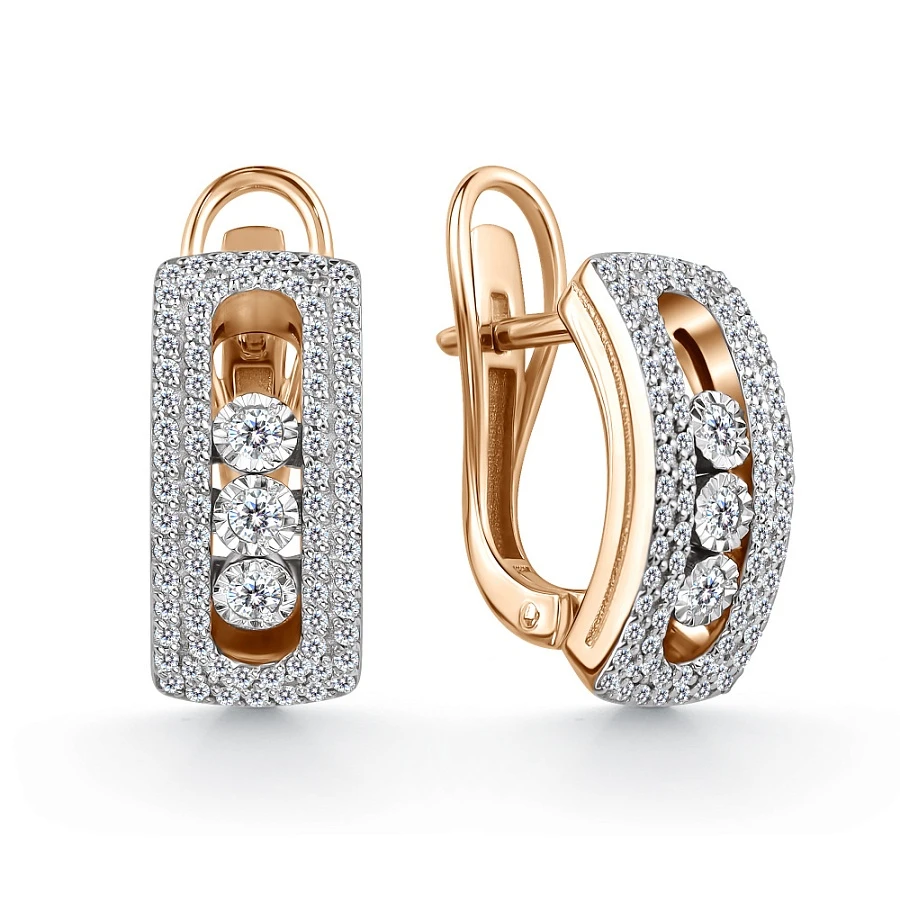 Серьги из комбинированного золота с природным бриллиантом