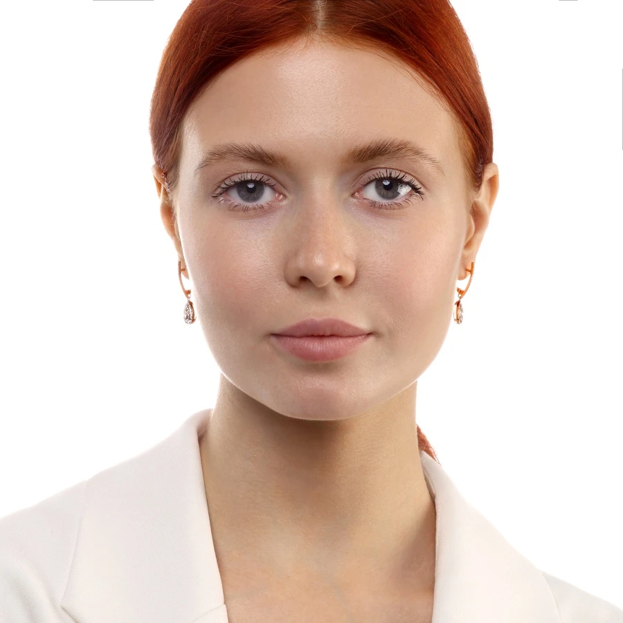 Серьги из красного золота с природным бриллиантом