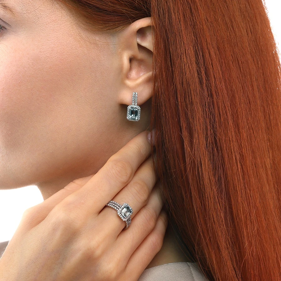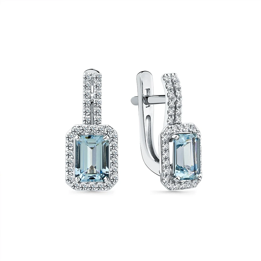 Серьги из белого золота с аквамарином