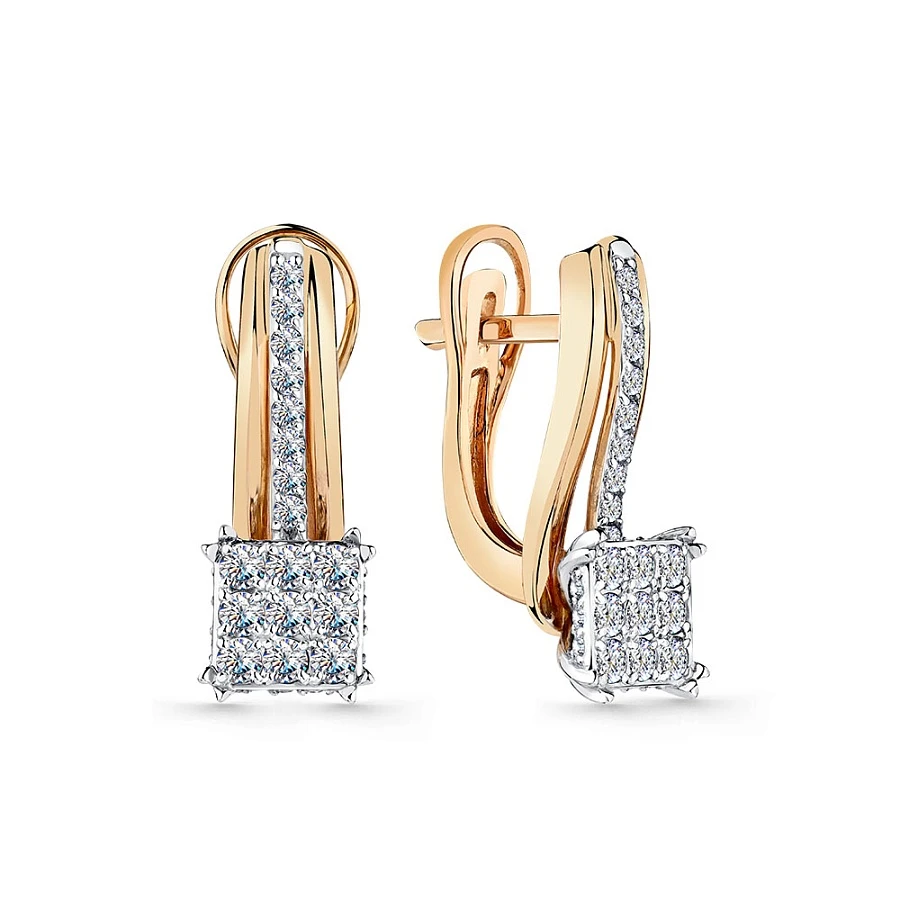 Серьги из комбинированного золота с природным бриллиантом