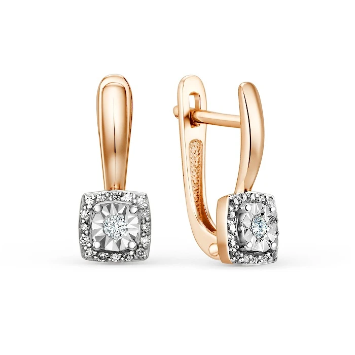 Серьги из красного золота с природным бриллиантом