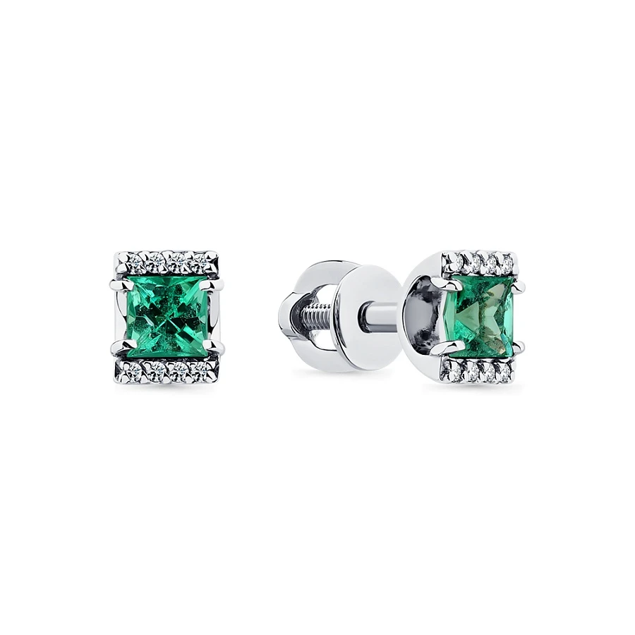 Серьги из белого золота с изумрудом