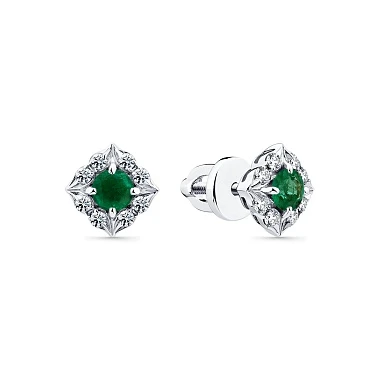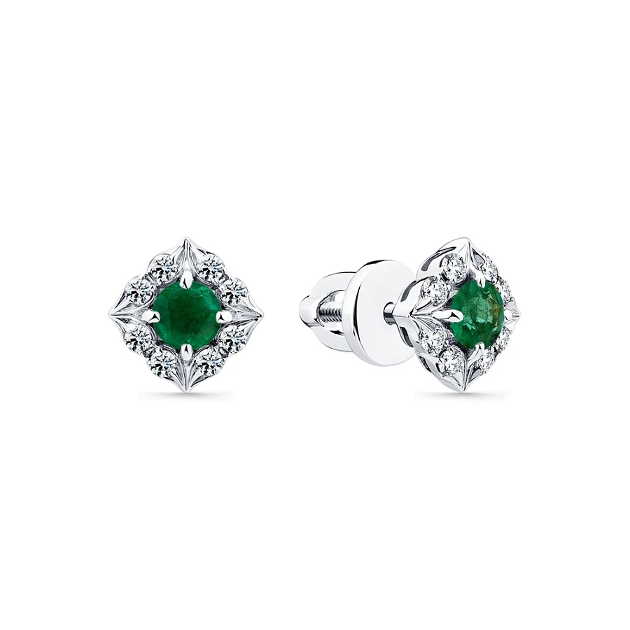 Серьги из белого золота с изумрудом