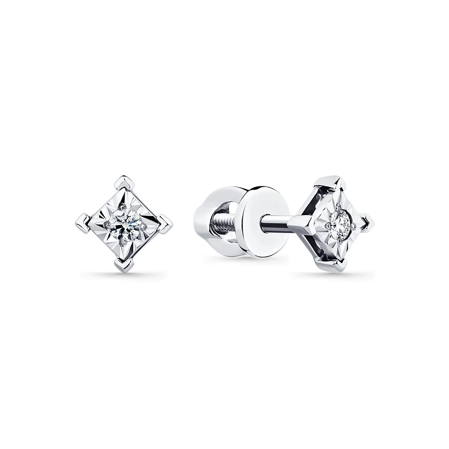 Серьги из белого золота с природным бриллиантом