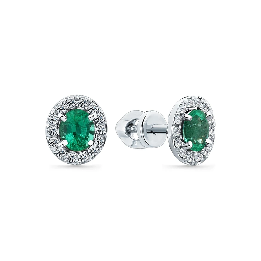 Серьги из белого золота с изумрудом