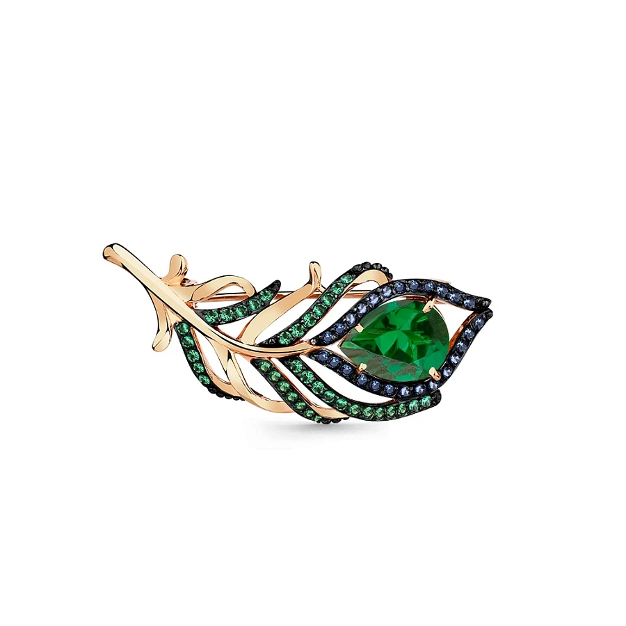 Брошь из красного золота ситалл-изумрудом