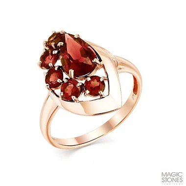 Кольцо из красного золота с гранатом