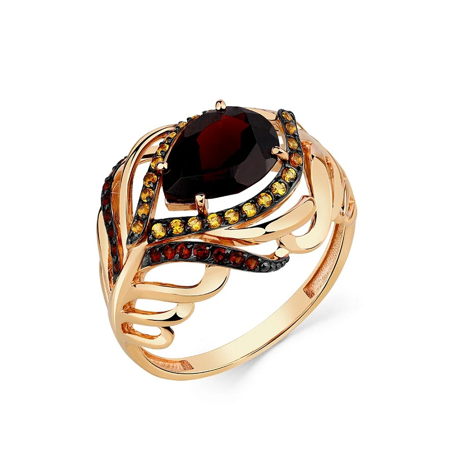 Кольцо из красного золота с гранатом