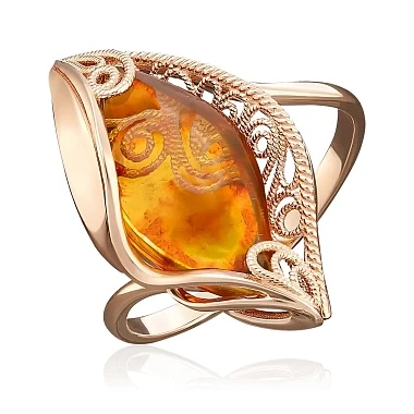 Кольцо из красного золота с янтарем
