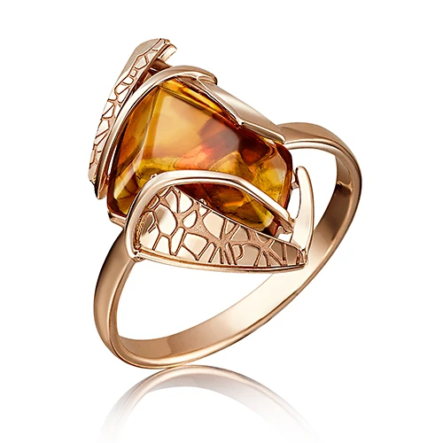 Кольцо из красного золота с янтарем