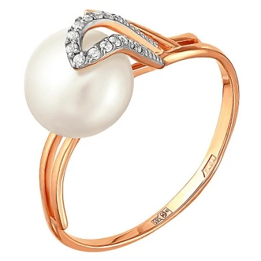 Кольцо  из красного золота с жемчугом