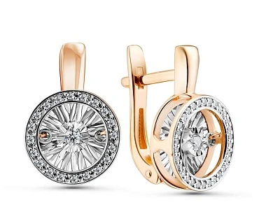 Серьги из комбинированного золота с природным бриллиантом
