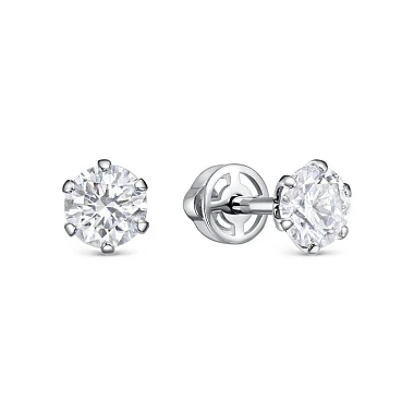Серьги из белого золота с выращенным бриллиантом