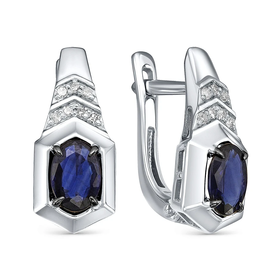 Серьги «Бриллиант Союз» из белого золота с сапфиром