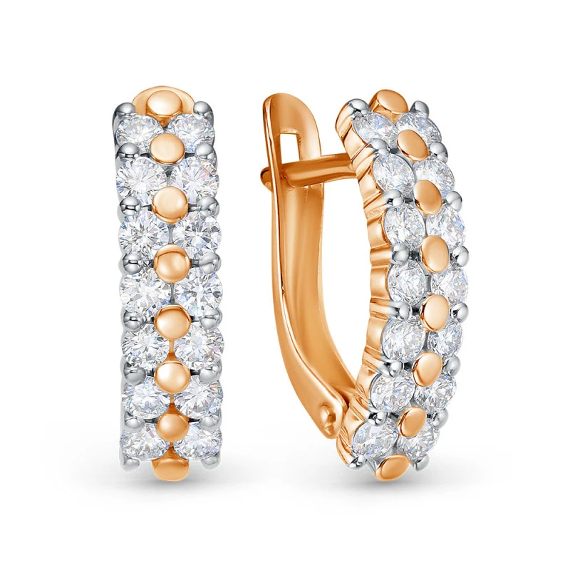 Серьги из красного золота с выращенным бриллиантом
